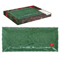 HOLLY & BERRIES GREEN SERVĒJAMAIS ŠĶĪVIS 37X16.5CM, ZAĻŠ, PORCELĀNS, Easy Life