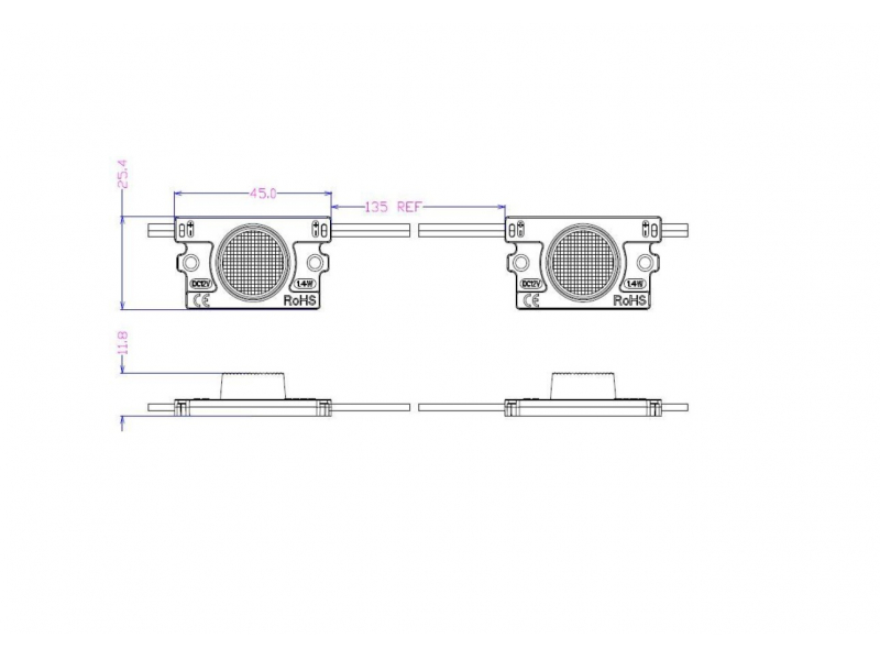 Gaismas leņķis horizontāli/vertikāli: 15°/45°