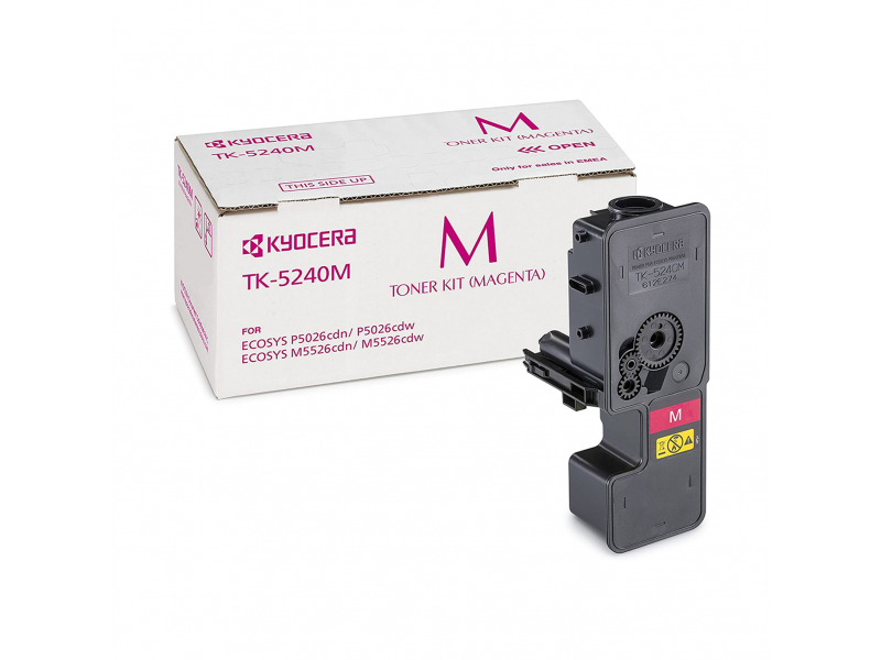Tonera komplekts: KyoceraTK-5240 (1T02R7BNL0) Saderīgs ar: Kyocera ECOSYS M5526cdn/ M5526cdn/A/ M5526cdw/ M5526cdw/A/ M5526 Series/ P5026cdn/ P5026cdw Krāsa: Magenta Kopiju skaits: 3.000 copies