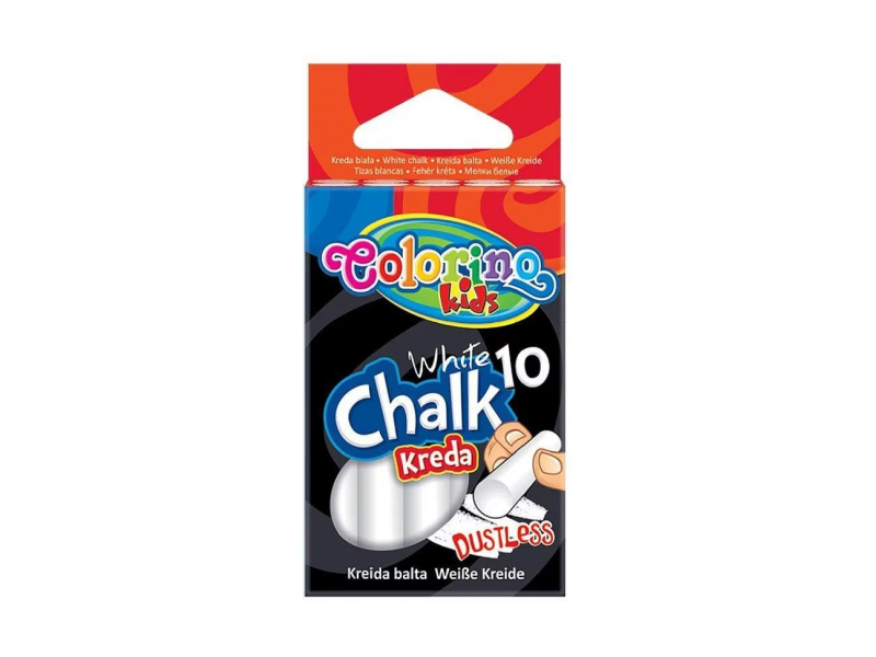 Dustless white chalk 10gab. Ideal for writing and drawing on the board.