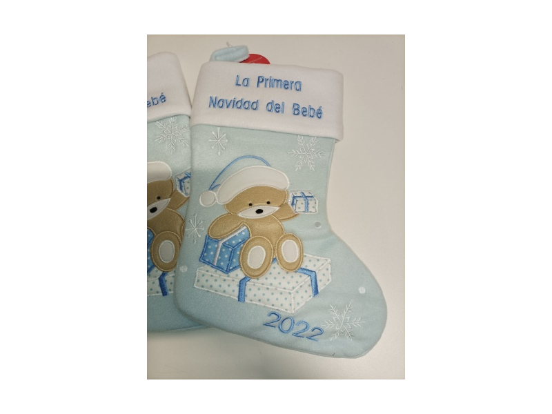 Ecost Heart's Sign Babys First Christmas Stockings Blue - Spanish