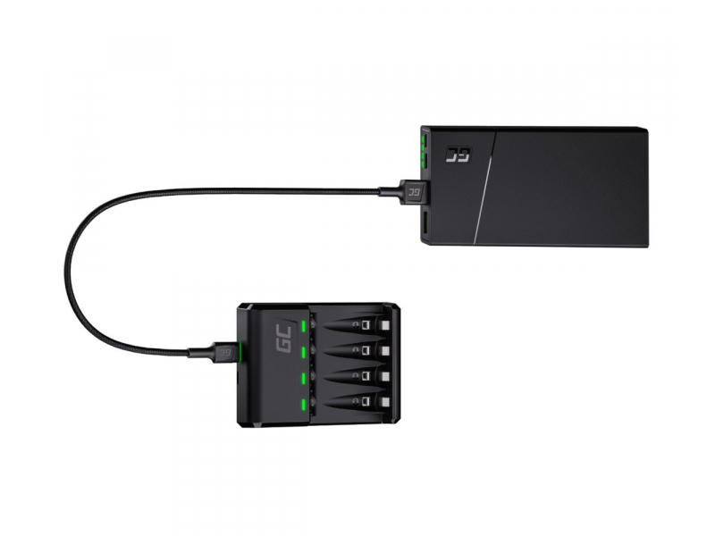 - 4 kanālu barošanas sistēma ļauj vienlaicīgi uzlādēt no 1 līdz 4 AA un AAA baterijām.