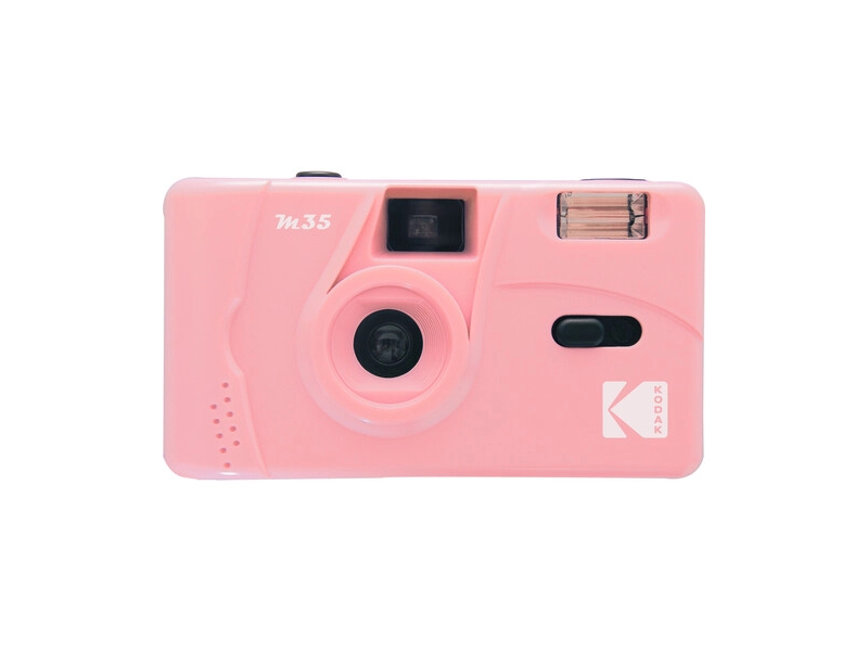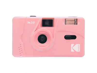 Kodak M35 filmiņu kamera ar zibspuldzi konfekšu rozā krāsā ir maza atkārtoti lietojama filmiņu kamera, kas izmanto 35 mm filmiņu. Šai kamerai ir 31 mm fiksēta fokusa objektīvs, manuāla filmas uztīšana un pārtīšana, kā arī iebūvēta zibspuldze ar ieslēgšanas/izslēgšanas slēdzi. To arī ērti darbina viena AAA sārma baterija. Ievietojiet kamerā 35 mm filmiņu un uzņemiet fotoattēlus, pēc tam attiniet atpakaļ filmiņu un attīstiet to.