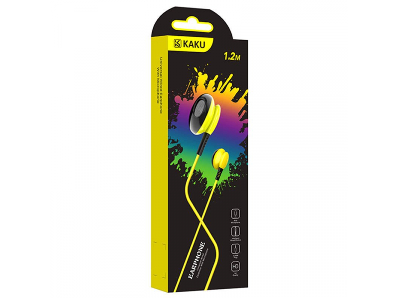 iKAKU KSC-379 Universālas Vieglas HiFi In-Ear Austiņas 3.5mm ar Mikrofonu 1.2m Dzeltenas