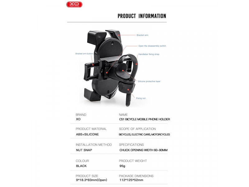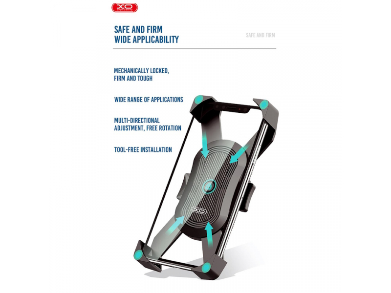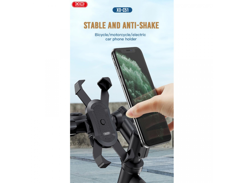 XO C51 ir universāls viedtālruņa velosipēda stiprinājums ar stūres stiprinājumu, piemērots velosipēdiem un motocikliem. Īpaša konstrukcija viedtālruni droši notur stabilā stāvoklī.
