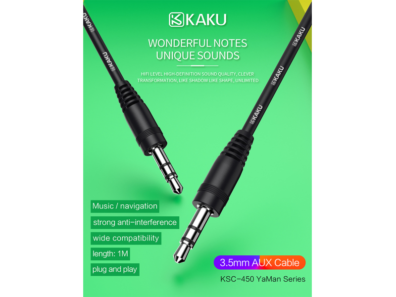 iKAKU KSC-450 Aux Ligzdas 3.5mm spraudnis uz 3.5mm spraudnis Stereo Audio 1m Kabelis Melns