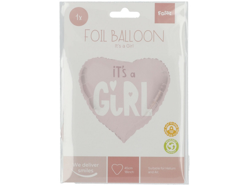 Folat Folija gaisa balons Heart shaped "It's a Girl" 45cm