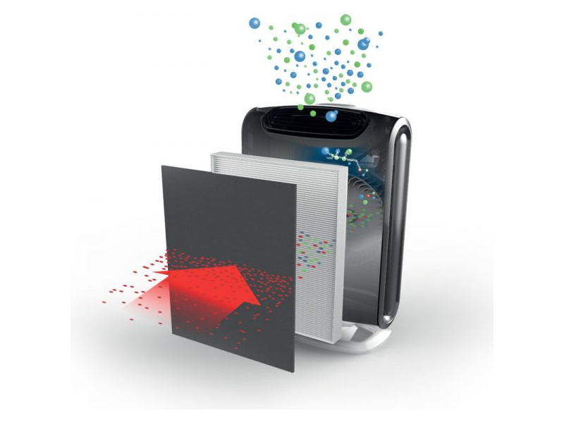 • True HEPA filtrs uztver 99,97% daļiņu un piesārņotāju līdz 0,3 mikroniem, tostarp pelējuma sporas, baktērijas, vīrusus, ziedputekšņus, ķīmiskos tvaikus (GOS), putekļu ērcītes un lielāko daļu baktēriju un alergēnu.
