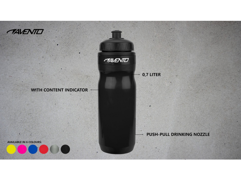 Avento ar skrūvējamu vāciņu un integrētu gumijas dzeršanas sprausla ir super produkts, kas ir daļa no jūsu sporta un fitnesa aprīkojumu. spout novērš izlīšanu un ir viegli atvērt un aizvērt, velkot vai presējot. Jūs vienmēr varat redzēt, cik daudz šķidruma ir jūsu pudelē, izmantojot satura displeju uz sāniem. duduma tilpums ir 0,7 litri, un tas ir pieejams vairākās sportiskās krāsās.