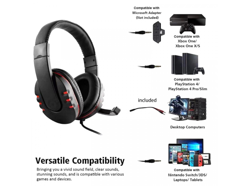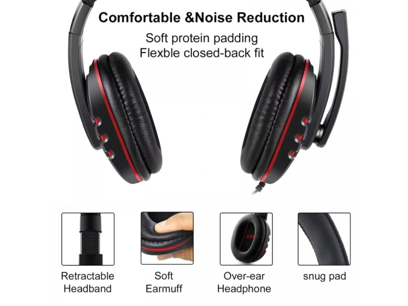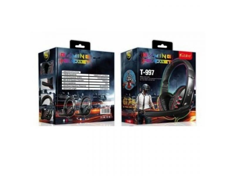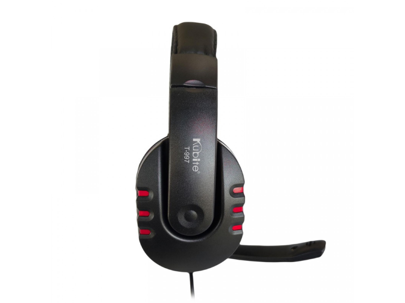 Kubite T997 Spēļu Austiņas 40mm draiveri 1.8m Vads 1x 3.5mm audio/mic + Pults Sarkanas