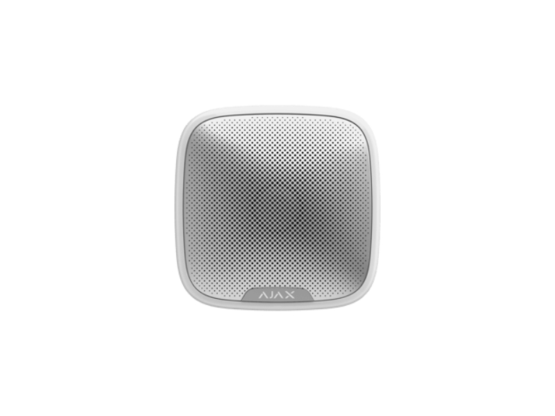 Bezvadu ielas sirēna. Audio un vizuālā signalizācijas sistēma ar pielāgojamu skaņas līmeni no 85 līdz 113 dB. Uztur savienojumu ar Ajax Hub līdz 2000 metru attālumā atklātā telpā. POZĪCIJU.