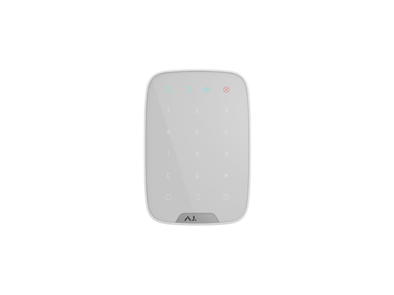 Bezvadu pieskāriena tastatūra. Ajax KeyPad palīdz pārvaldīt Ajax drošības sistēmu. Piesprādzējiet sistēmu ar caurlaides kodu vai nospiediet pogu. Izmantojiet aizsprosta kodu, lai nosūtītu klusu trauksmes signālu uz centrālo monitoringa staciju.