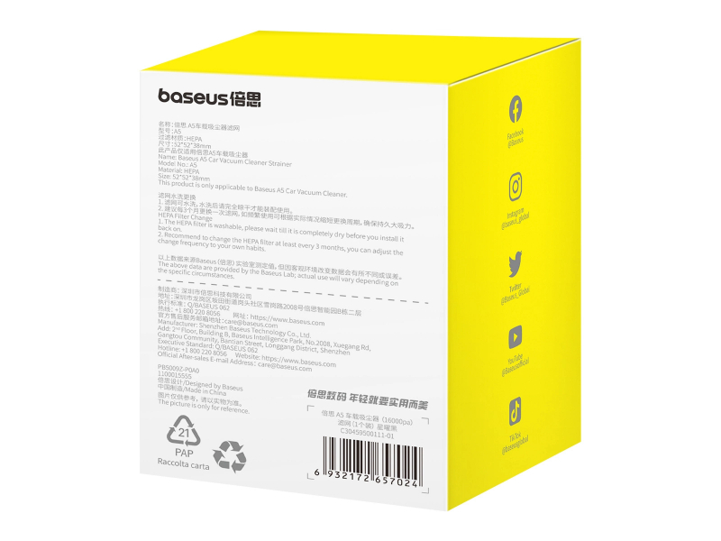 Get your Baseus A5 putekļsūcēja maksimālā veiktspēja ar saderīgu filtru. Baseus A5 filtrs ir speciāli izstrādāts, lai tas lieliski atbilstu Jūsu ierīcei, kas garantē tā efektīvu darbību.