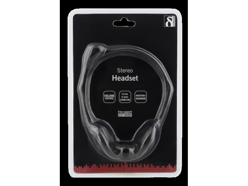 DELTACO Stereo Headset, 30mm Prece, 32 Ohm, 3.5mm Mini, Aprox 2m Cable, Black