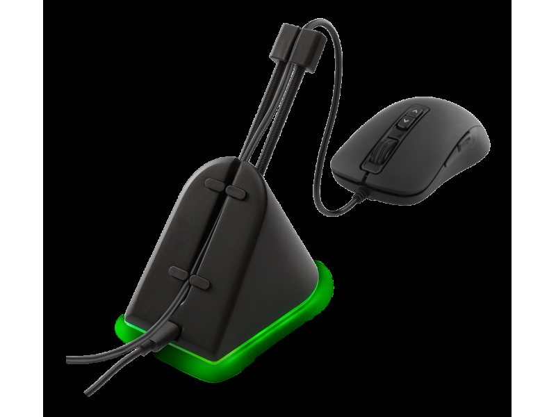 Ar mūsu GAM-044 Pele Bungee jūs nolemjat, cik daudz kabelis vēlaties ir pieejams, sniedzot jums perfektu garumu un brīvību, lai pārvietotu peli bez kabeli velkot to. Bungee stāv stingri uz galda, pateicoties tās labi sabalansētu būvniecību. Vēl viena jauka iezīme ir tā, ka roka augšā, kas tur kabeli, arī ir regulējama, piebilst, ka RGB-strip zem kura var spīdēt 7 vienas LED krāsas vai darbojas varavīksnes krāsu shēma. Tas viss, lai jūs varētu koncentrēties uz savu spēļu, neatkarīgi no tā, ko eSport (FPS/MOBA/RTS) jūs spēlējat. ARĪ 2B201.