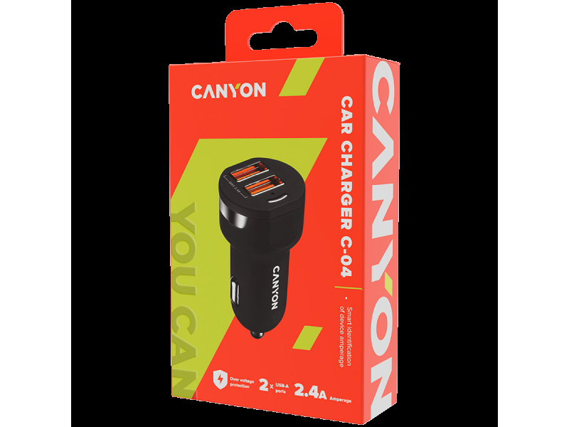 | Tirdzniecības nosaukums | Kanjona auto lādētājs c-04 2.4a/2usb-a melns |