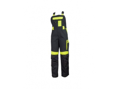 Darba puskombinezons ar kontrasta krāsas detaļāmVairākas kabatas: krūšu kabata ar atloku ar Velcro aizdari un papildu kabatām mobilajam tālrunim un pildspalvai, sānu kabatas, aizmugurējās kabatas ar atloku ar Velcro aizdari, augšstilba kabata ar papildu nodalījumiem.Ceļgalu sargu kabatas – vietas ar lielāku nodiluma varbūtību – pastiprinātas ar īpaši izturīgu materiālu.- Kontrasta auduma turētājs darbarīkiem bikšu labajā pusē- Vidukļa platums regulējams ar sānu pogām- Gaismu atstarojošas detaļas