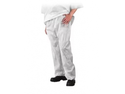 Vienreizējās lietošanas polipropilēna bikses- aizsargā pamata apģērbu no piesārņojuma- ideāli piemērotas kosmētikas, medicīnas un ķīmijas nozarēm- tiek izmantotas darbam laboratorijās un pārtikas rūpniecībā- elastīga jostasvieta ļauj labāk pielāgot izmēru