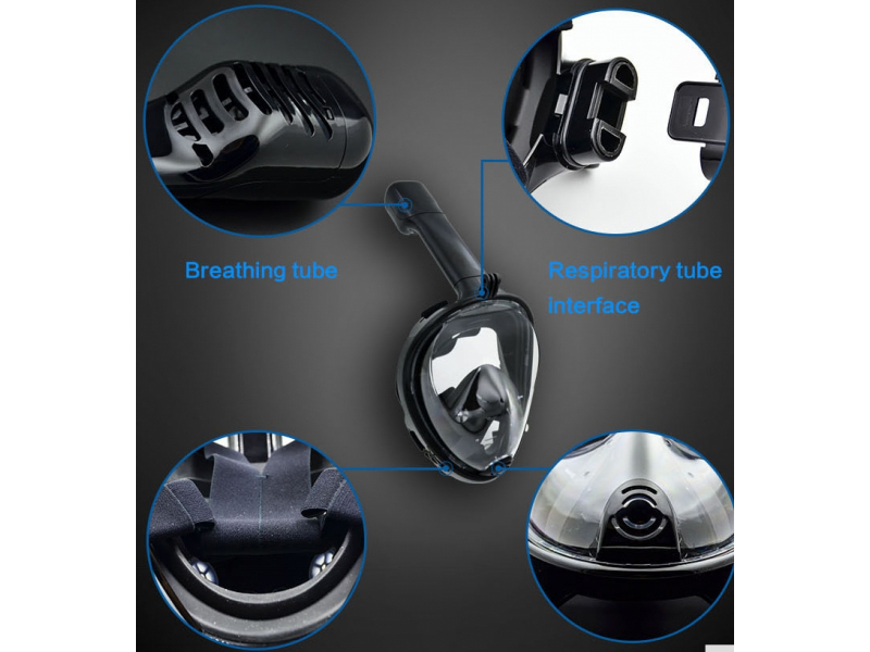 • 180° platuma redzeslos - loka forma polikarbonāta virsma, plašāka redzamība bez aklām zonām, lai snorkeleri baudītu zemūdens paseuli.