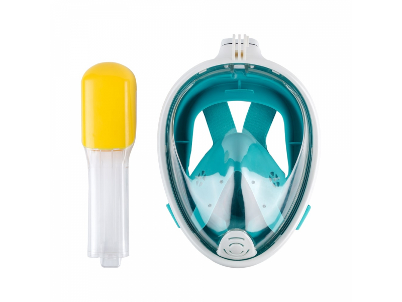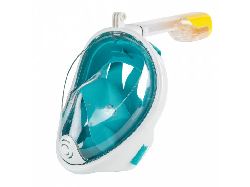 • 180° platuma redzeslos - loka forma polikarbonāta virsma, plašāka redzamība bez aklām zonām, lai snorkeleri baudītu zemūdens paseuli.