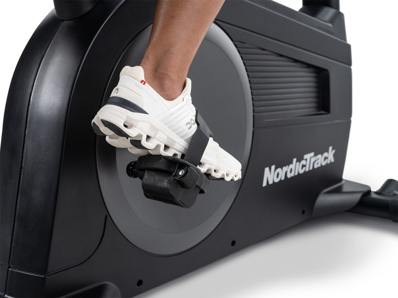 pedāļi: pārāk lieli šarnīra pedāļi ar regulējamām neilona kāju siksnām;