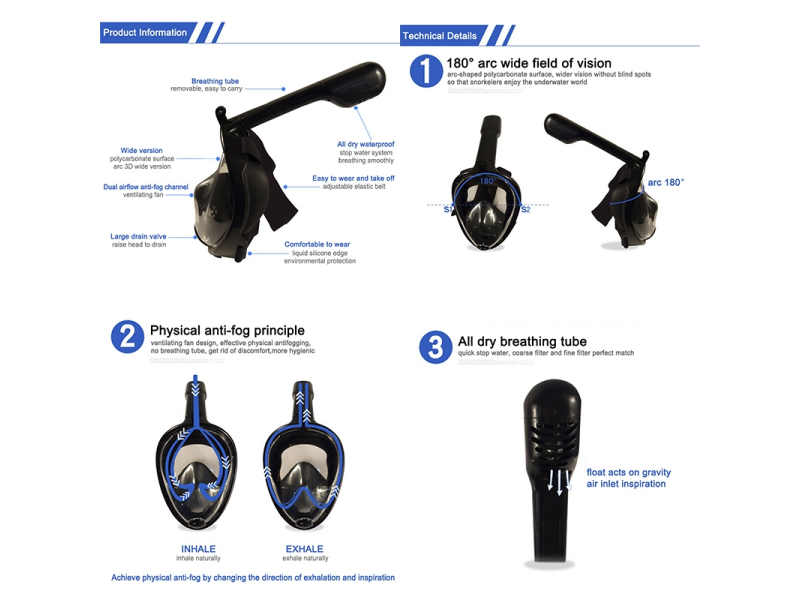 Snorkelēšanas tehnoloģija • GoPro kameras turētājs (nav iekļauta GoPro kamera) • Dubultie ventilācijas kanāli • Drenžas veikals • Elastīgas neilona siksnas • Izturīgs PC stils ar 180° redzamību • Ieelpošana - dabisks gaiss, kas ieelpots ar degunu. Izelpošana - dabiska deguna elpošana. Par PAR PRODUKTU •Elpošanas tiesības - noņemma, viesmīlība, viesmīlība – ventilatora efekts • Lielās dravas vārsts - templietis galvu, lai iztukšotu • Ūdens nekalaidība - ārvalsts sistemātika • Viegli uzvedums un jaunums - regulējamās elastības siksnas • Ērti kāts - vizuāls bizness mala, atbilst aklastībai - ārprāts • Pretaizsvīšanas princips - ventilatora gala konstrukcija, ekonomijas aizsardzība pret aizsvīšanu, trubiņu neesamība, atbrīvošanās no diskomforta, slēpošana. IZVĒLĒTIES MASKAS IZMĒRU: Vispirms izmērot garumu no acīm līdz zodam. Ja garums ir mazs par 13,5 cm, lietas S / M izmēros (piemēros pusaudžiem un pieaugušiem). Ja garums ir viensāds vai lielāks par 13,5 cm, lietas izmēri L / XL (piemērots pieaugušajiem).