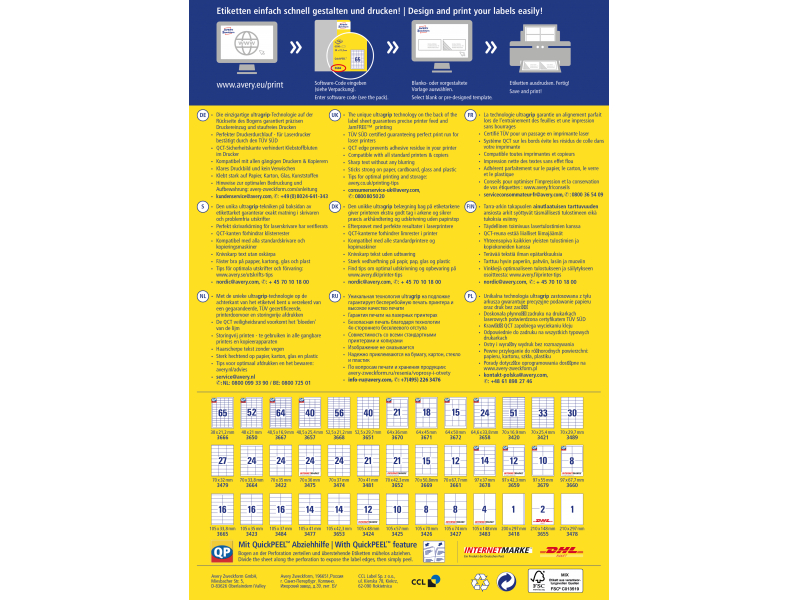 Inovatīvā QuickPEEL™ tehnoloģija padara etiķešu atdalīšanu un uzlīmēšanu maksimāli ātru un ērtu. Turklāt etiķetes ir FSC®-sertificētas un balinātas bez hlora, padarot tās par videi draudzīgu izvēli.