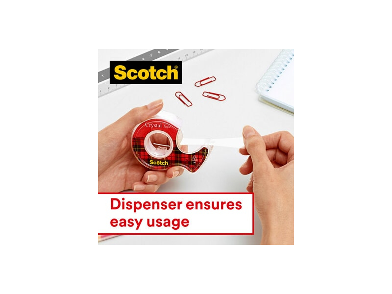 Nodrošinot spēcīgu un ilgstošu saķeri ar dažādiem materiāliem, piemēram, papīru, kartonu un plastmasu, Scotch Crystal Clear līmlente garantē jūsu darbu uzticamību un precizitāti. Tā ir augstas kvalitātes skotu lente, uz kuru varat paļauties jebkurā situācijā: no ikdienas labošanas darbiem līdz kancelejas precēm un radošiem projektiem.