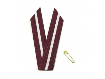 Latvijas karoglente ar piespraudi. Lentes garums, nesalocītā veidā 15cm, platumā 15mm.