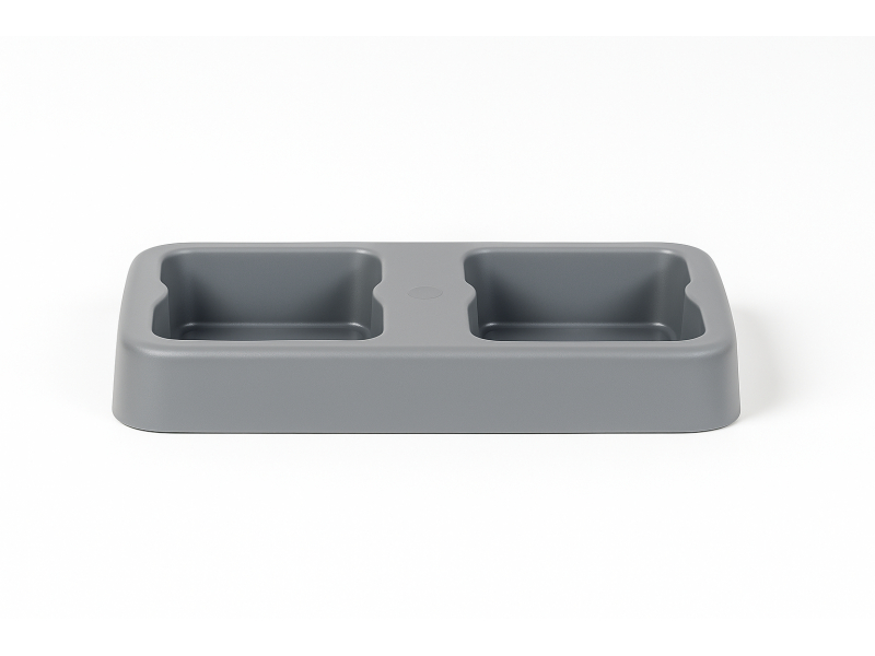 Atkritumu tvertņu paliknis 2x53L ir praktisks un izturīgs risinājums divu lielu tvertņu stabilai novietošanai. Izgatavots no kvalitatīvas pelēkas plastmasas, kas ir noturīga pret mitrumu un viegli kopjama. Paliknis palīdz noturēt tvertnes vietā, pasargā grīdu no netīrumiem un nodrošina kārtību.