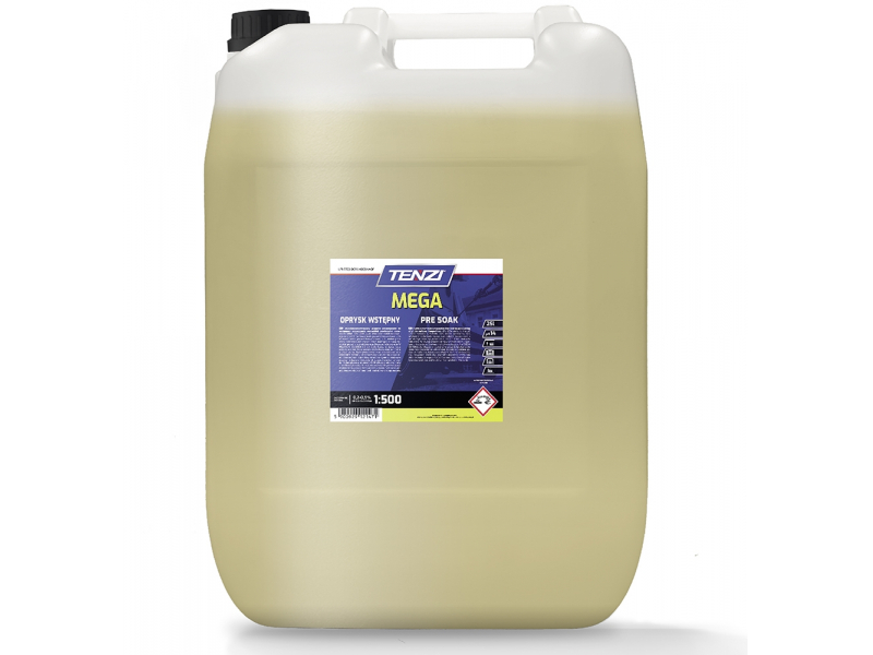 PRE-SOAK MEGA, Pre-wash - Augsti koncentrēts mazgāšanas līdzeklis visu automašīnas virsmu iepriekšējai mazgāšanai no tādiem piesārņotājiem kā smiltis, netīrumi, augu putekšņi, sodrēji, svaigi putnu izkārnījumi. Atšķiras ar augstu efektivitāti un darbības ātrumu. Mazgāšanas līdzekli raksturo liels kompleksu veidojošo savienojumu daudzums, kas papildus mīkstina ūdeni, paātrina mitrināšanu, vienlaikus noņemot no virsmas piesārņotājus.