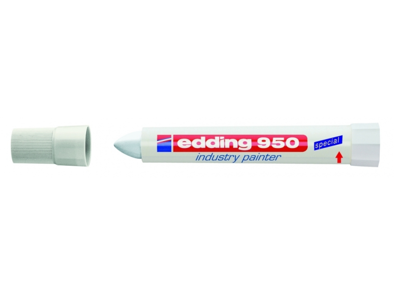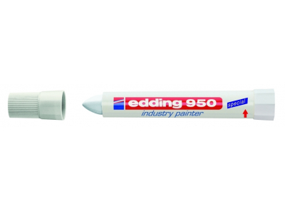 Edding 950 Industry Painter ir profesionāls baltais marķieris, kas radīts visprasīgākajiem apstākļiem. Šis izturīgais rūpnieciskais marķieris nodrošina skaidras, noturīgas un labi redzamas atzīmes pat uz rūsainām, mitrām vai nelīdzenām virsmām. Tas ir ideāli piemērots lietošanai naftas, metālapstrādes un būvniecības nozarēs, kā arī darbnīcās, lieliski piemērots marķēšanai uz metāla, koka, akmens un citiem materiāliem.
