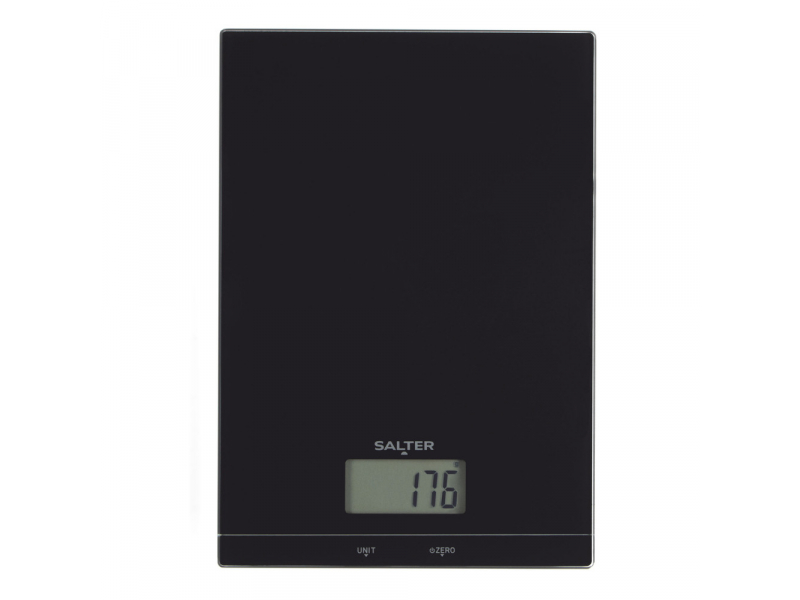 Stikla elektroniskie svari: Izmēģiniet dažādas saldas un sāļas receptes ar Salter stikla elektroniskajiem svariem. Ar eleganto melno apdari precizitāte vēl nekad nav izskatījusies tik stilīgi! Pievienot un svērt: Izmēriet vairākas sastāvdaļas vienā traukā, pateicoties funkcijai “Add & Weigh”. Vienkārši pievienojiet sastāvdaļas, atiestatiet uz nulli un turpiniet pievienot – ietaupot laiku uzkopšanā.