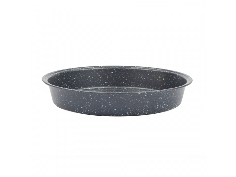 Izturīgs un ilgmūžīgs oglekļa tērauds: Šī apaļā panna ir izgatavota no izturīga oglekļa tērauda, lai nodrošinātu ilgstošu kvalitāti, un tai ir augsta mala, padarot formas izņemšanu no cepeškrāsns drošāku.