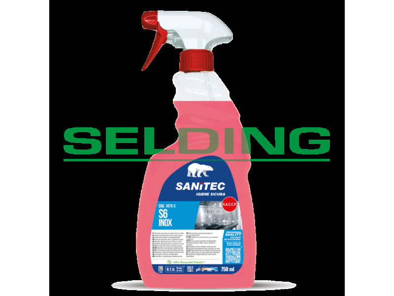 Iepakojums: 750ml, pH 2,5. Gatavs lietošanai. Izsmidzināms tīrīšanas līdzeklis tērauda, nerūsējošā tērauda, vara, misiņa un alumīnija virsmu un trauku profesionālai tīrīšanai. Rūpīgi attīra virsmu no taukiem un kaļķakmens, nesaskrāpējot to un neatstājot svītras. Lietošana: Izsmidziniet, vienmērīgi uzklājiet, izmantojot tīru drānu, un atstājiet iedarboties. Lai iegūtu lielisku rezultātu, pabeidziet apstrādi, izmantojot Sanitec S7 STEELPRO (preces kods: 1813). Atbilst H.A.C.C.P. (apstiprināts izmantošanai PĀRTIKAS jomā).