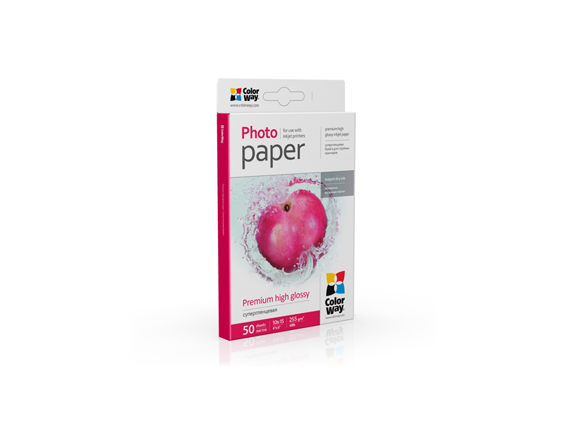 COLORWAY PREMIUM HIGHGLOSSY FOTOPAPĪRS, 255G/M, 10X15, 50PCS.