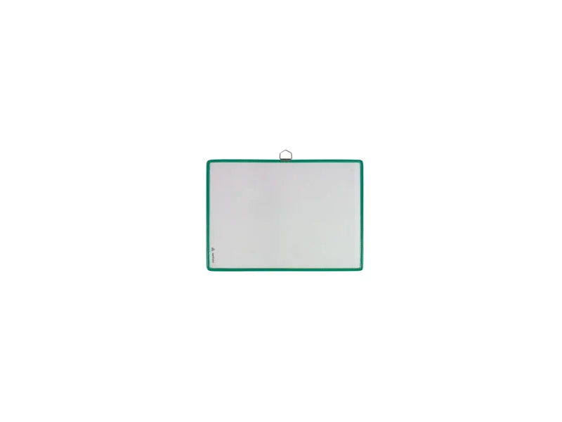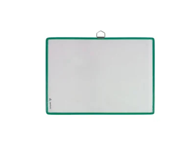 Horizontāla informācijas kabata ar metālisku āķi piekāršanai. Izturīga PVC materiāla kabata, kas iestrādāta stingrā metāla rāmī. Piemērota A4 formāta dokumentiem. Apmale dažādās krāsās. Iepakojumā 5 gabali.