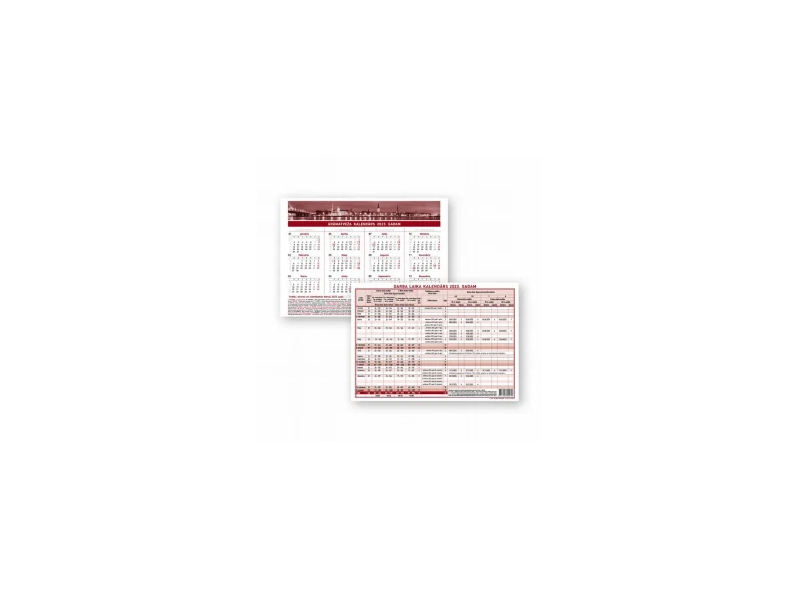 Produkta apraksts Galda tabulveida kalendārs, formāts A4, satur grāmatvedim noderīgu informāciju. Izmērs: A4 jeb 210x297 mm.
