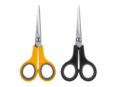 Pateicoties to simetriskajam dizainam, šīs ambidekstrālās šķēres ir vienlīdz ērtas gan labročiem, gan kreiļiem. Smailais gals ļauj veikt precīzu griešanu un darbu ar sīkām detaļām, nodrošinot maksimālu precizitāti. Optimālais 140 mm garums padara tās universālas papīra, kartona, auduma un citu materiālu griešanai.