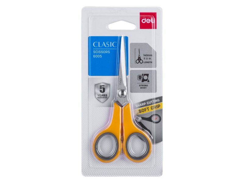 DELI E6005 140 mm šķēres ir ideāls instruments precīzai un komfortablai griešanai, kas kļūs par neaizstājamu palīgu gan birojā, gan mājās, gan radošās nodarbībās. To asie, augstas kvalitātes nerūsējošā tērauda asmeņi nodrošina tīrus un precīzus griezumus, savukārt ergonomiskie rokturi ar mīkstu pārklājumu garantē ērtu lietošanu un mazina roku nogurumu pat ilgstošā darbā.