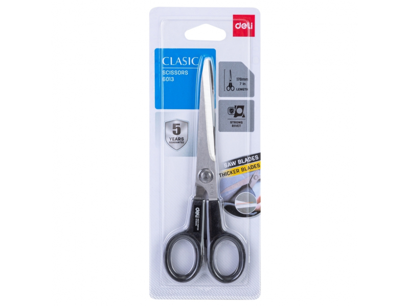 Izvēloties DELI 6013 universālās šķēres, jūs iegūstat ilgmūžīgu un funkcionālu instrumentu, kas apvieno sevī kvalitāti un ērtības. Tās ir ideāli piemērotas ikdienas uzdevumiem, nodrošinot augstu precizitāti un profesionālu rezultātu katrā lietošanas reizē.