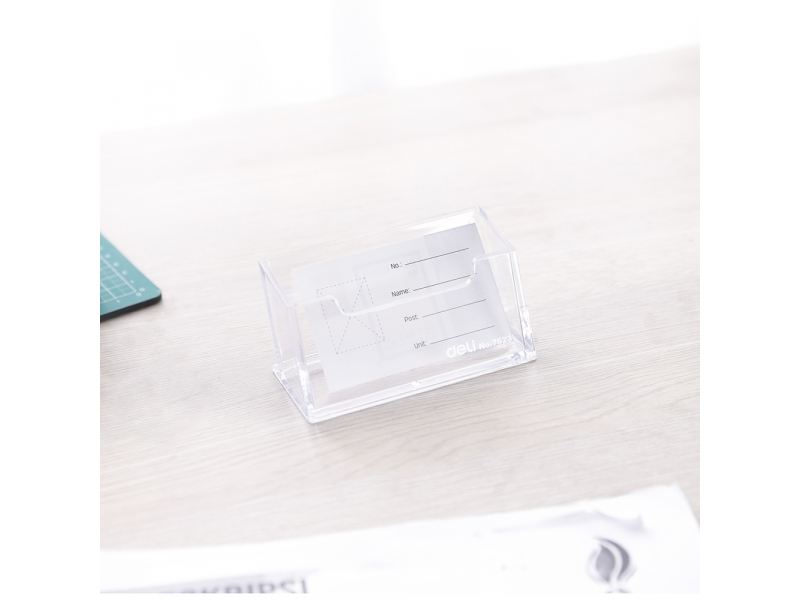 Vai meklējat elegantu un praktisku veidu, kā organizēt savas vizītkartes un uzturēt tās viegli pieejamas? DELI caurspīdīgais vizītkaršu turētājs ir ideāls risinājums, kas apvieno stilīgu dizainu un maksimālu funkcionalitāti. Izgatavots no augstas kvalitātes akrila, šis galda aksesuārs palīdzēs uzturēt kārtību jūsu darba vietā un nodrošinās, ka nepieciešamie kontakti vienmēr ir pa rokai.