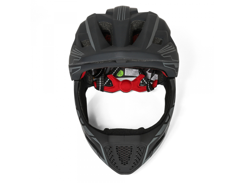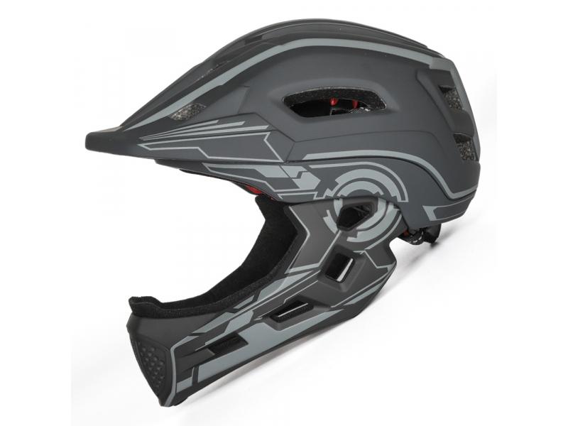Pateicoties izturīgajam sejas dizainam, ķivere garantē pilnīgu sejas un žokļu aizsardzību un papildus aizsargā seju no saules, lietus un putekļiem. Turklāt integrēta LED gaisma uzlabo bērnu amplitūdu;#39;s redzamība naktī un vājā apgaismojumā.