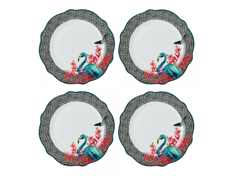 Part of the Mikasa x Sarah Arnett collection, this set of four porcelain dinner plates is decorated in a colourful print, set amongst a backdrop of colourful flora and fauna. Destined to add a touch of dramatic allure to any dining table, this plate set is created in collaboration with renowned artist Sarah Arnett, showcasing designs filled with vivid and bold illustrations. Made from high-quality porcelain built to last, the 27cm dinner plate set is both microwave and dishwasher safe and includes a 2-year guarantee. Perfect for gifting, it comes in high-quality, gift box packaging that is drop-test ready. Discover the rest of the Mikasa x Sarah Arnett collection for stunning cocktail mugs, dinnerware, serveware and more.Key FeaturesMikasa x Sarah Arnett Porcelain Dinner PlatesSet of four, flamingo and butterfly printMade from porcelainMeasurements: 27cmDishwasher and microwave safeComes in a drop-test ready presentation box Dimensions: 26.4 x 26.4 x 5.5cmProduct Weight in KG: 2.636Product Weight in KG (Including Packaging): 3.558Colour: MixedMaterial: Porcelain