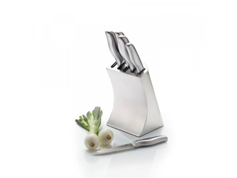 Šie luksusa līmeņa naži ir kalti no nerūsējošā tērauda ar augstu oglekļa saturu, tie ir izlīdzsvaroti lai ilgstoši strādājot nenogurst rokas. Tiem ir viegli satverami neslīdoši rokturi, kas garantē stingru un ērtu satvērienu. Komplektā ir skulpturāli veidots, izgatavots no matēta nerūsējošā tērauda, nažu turētājs, ko var turēt uz galda. Visi naži ir precīzi slīpēti vieglai un efektīvai asināšanai. Trojas nažu turētājs, ko var ieraudzīt jebkurā virtuvē, patiešām izceļas.Komplektā: šefpavāra nazis 20cm, griešanas nazis 20cm, maizes nazis 20cm, klasiskais nazis 12,5cm, griešanas nazis 9cm, uz galda novietojams nažu turētājs 21x14cm.Nažus var mazgāt trauku mazgājamā mašīnā.Nažu turētāja kopšana notīrot ar mitru drānu.Garantija 25.gadiUZMANĪBU! Ražotājs iesaka nepārdot personām, kas jaunākas par 18 gadiem