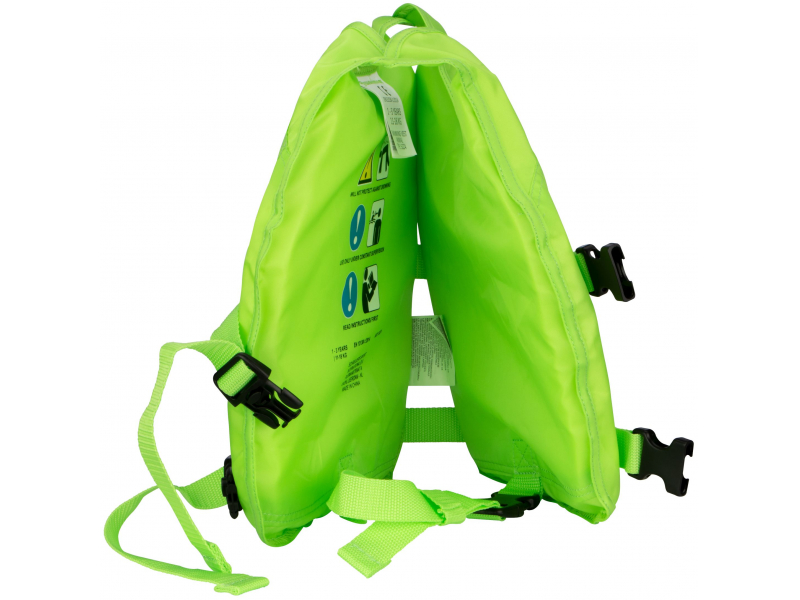 100 % putu pildīšana, regulējama peld veste, ātras darbības drošības sprādzes, regulējama pp drošības josta starp kājām ar drošu ātri atveramu drošības sprādzi, peldspējas vērtība 46,3 n, poliesteris ar polietilēna pildījumu, ce apstiprināts saskaņā ar en 13138 -1 : 2014