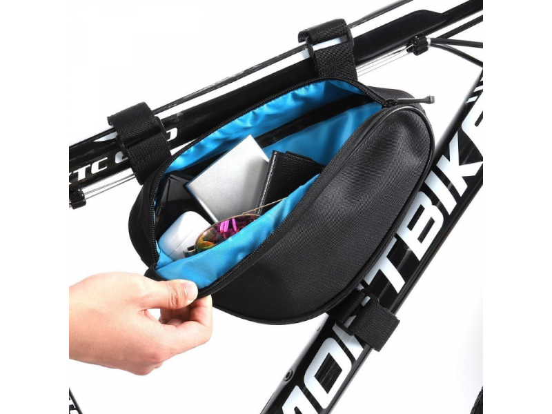 Сумки крепятся к раме застежками-липучками. Это делает их очень портативными - их можно снять и взять с собой в любое время. Треугольная форма изделия отлично вписывается в конструкцию двухколесного автомобиля.