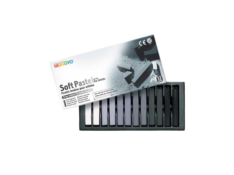Sausie pasteļkrītiņi MUNGYO, 12 toņi (pelēkie)
